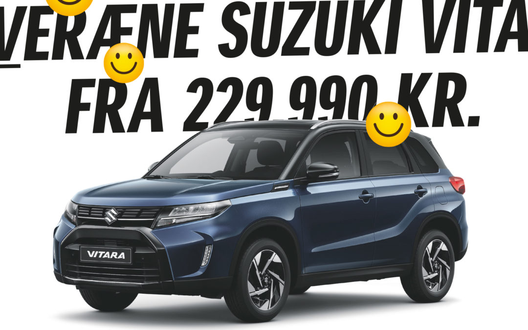 Kør hjem i den nye Vitara, som kommer med endnu mere sikkerhed og udstyr. Større skærm med trådlås CarPlay, nøglefri døre og start, 17″ alufælge, Suzuki Connect og fuld sikkerhedspakke i alle varianter – og prisen er den samme!
