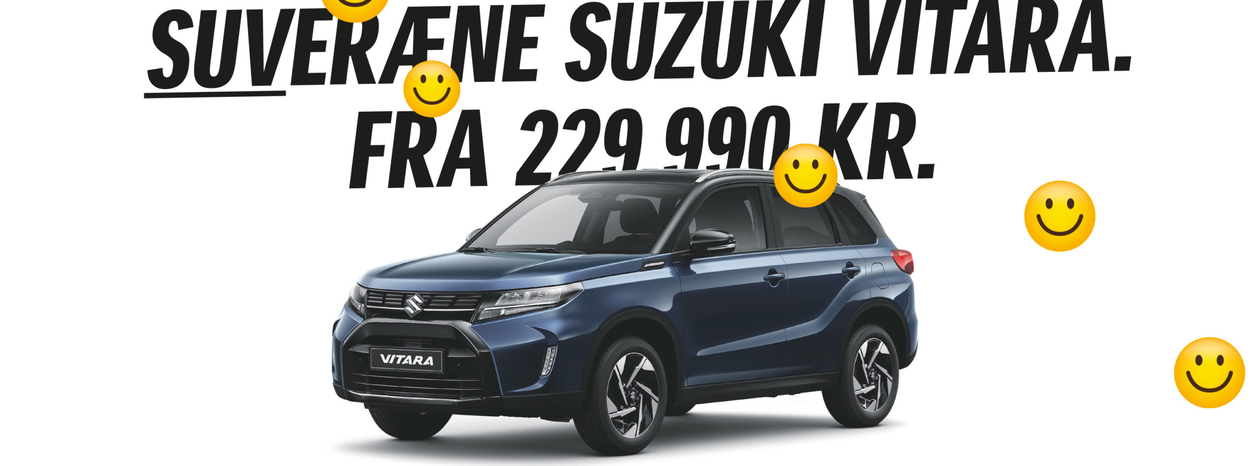Vil du have usædvanlig meget SUV for pengene? Så skal du vælge Vitara, der kører på Suzukis solide SUV-erfaring, og netop er kommet i en opgraderet udgave. Her er rendyrket SUV-design, masser af fedt udstyr og op til 1.500 kg på krogen. Som ægte SUV fås Vitara naturligvis også med AllGrip 4WD. Modellerne med 6-trins manuelt gear er som standard udstyret med det effektive 48V mild-hybridsystem. Og modellerne med automatisk gearskifte (AGS) er med Suzukis nye selvopladende S-Hybridsystem, hvor bilen også kan køre på strøm under visse forhold.